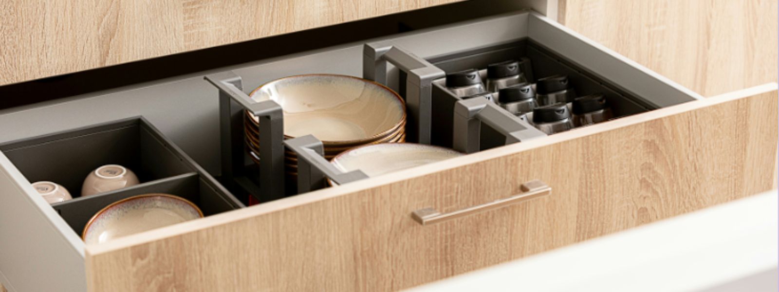 Although there is a wide variety of custom organizers to fit any needs, trash can pullouts, blind corner roll-outs, spice rack pullouts, and pot and pan organizers are some of the most-loved custom kitchen add-ons.