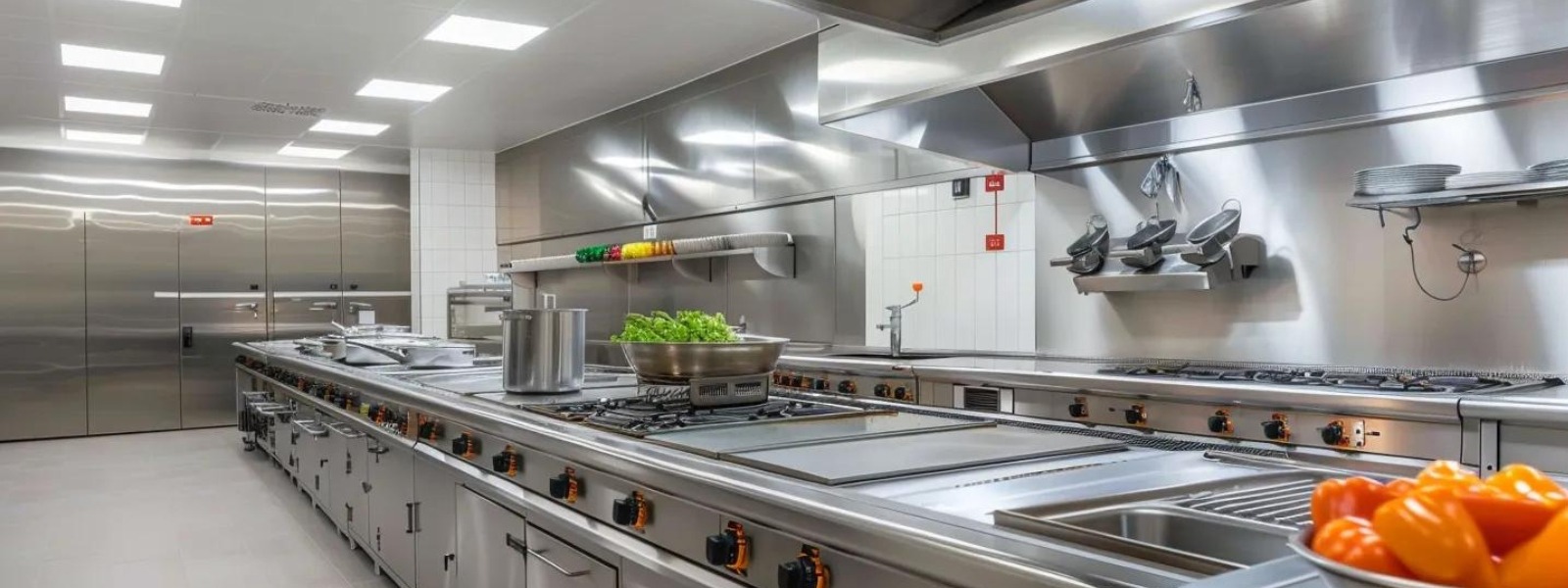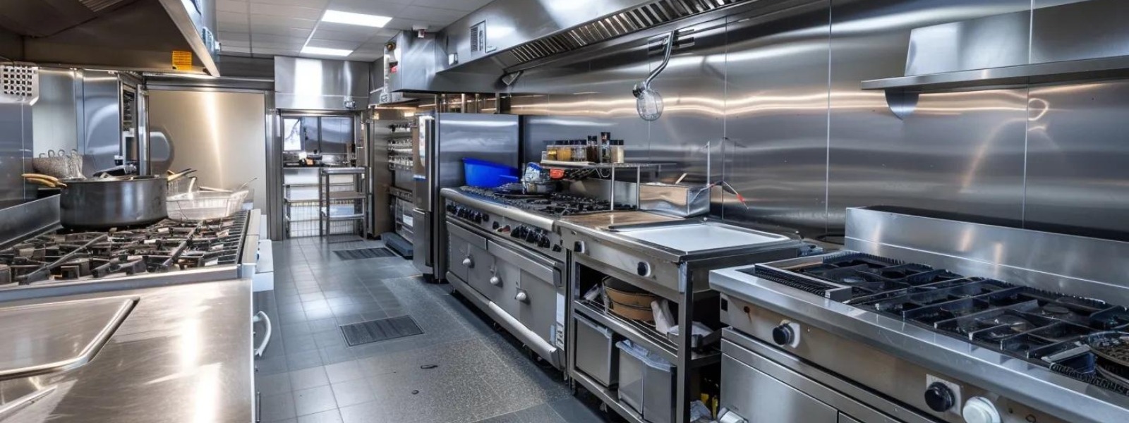 Regular kitchens use standard home appliances while commercial kitchens use industrial-grade equipment. Commercial equipment handles all-day use and accommodates hundreds of people daily. The construction quality, BTU output, and durability differ significantly between residential and commercial appliances.